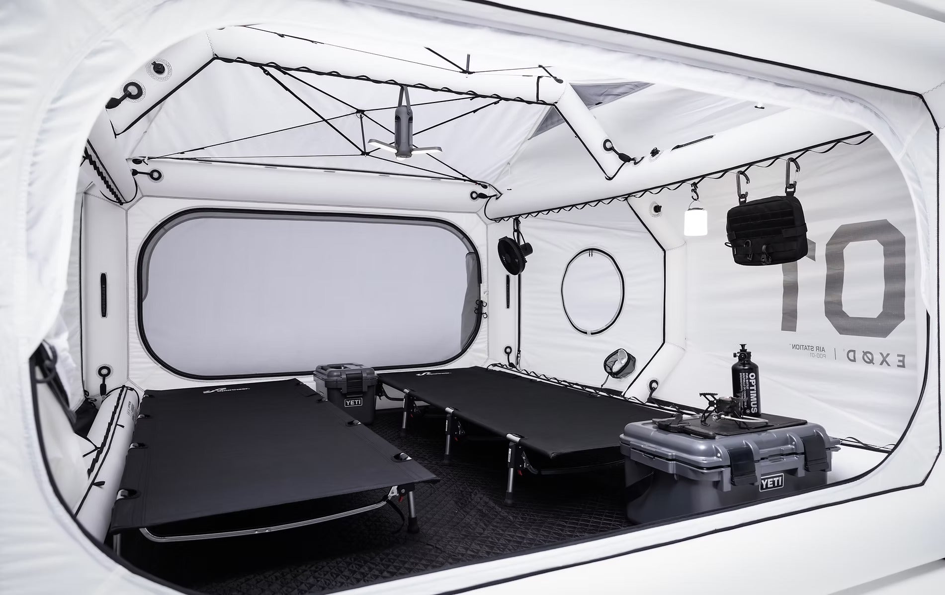 Developed with proprietary materials inspired by kite-surfing tech, our inflatable fibolar frame absorbs impacts and endures extreme environments — zero poles, zero stress.