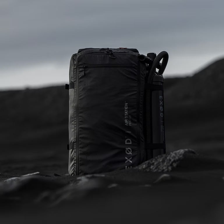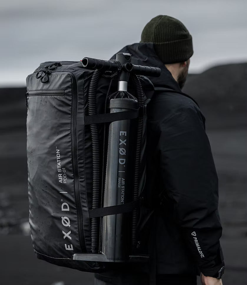 Despite its rugged build, the POD-01 packs down into a compact backpack-sized carry bag, with shoulder straps and internal pockets to secure the included pump and gear. Toss it in your trunk, roof rack, or backpack — it's designed to go anywhere you do.